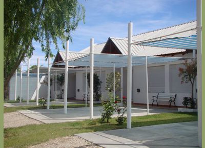 El alojamiento cuenta con espacios verdes y cocheras individuales, brindando comodidad y privacidad a cada huésped. Las instalaciones están equipadas con rejas, luz de emergencia y matafuegos para mayor seguridad.